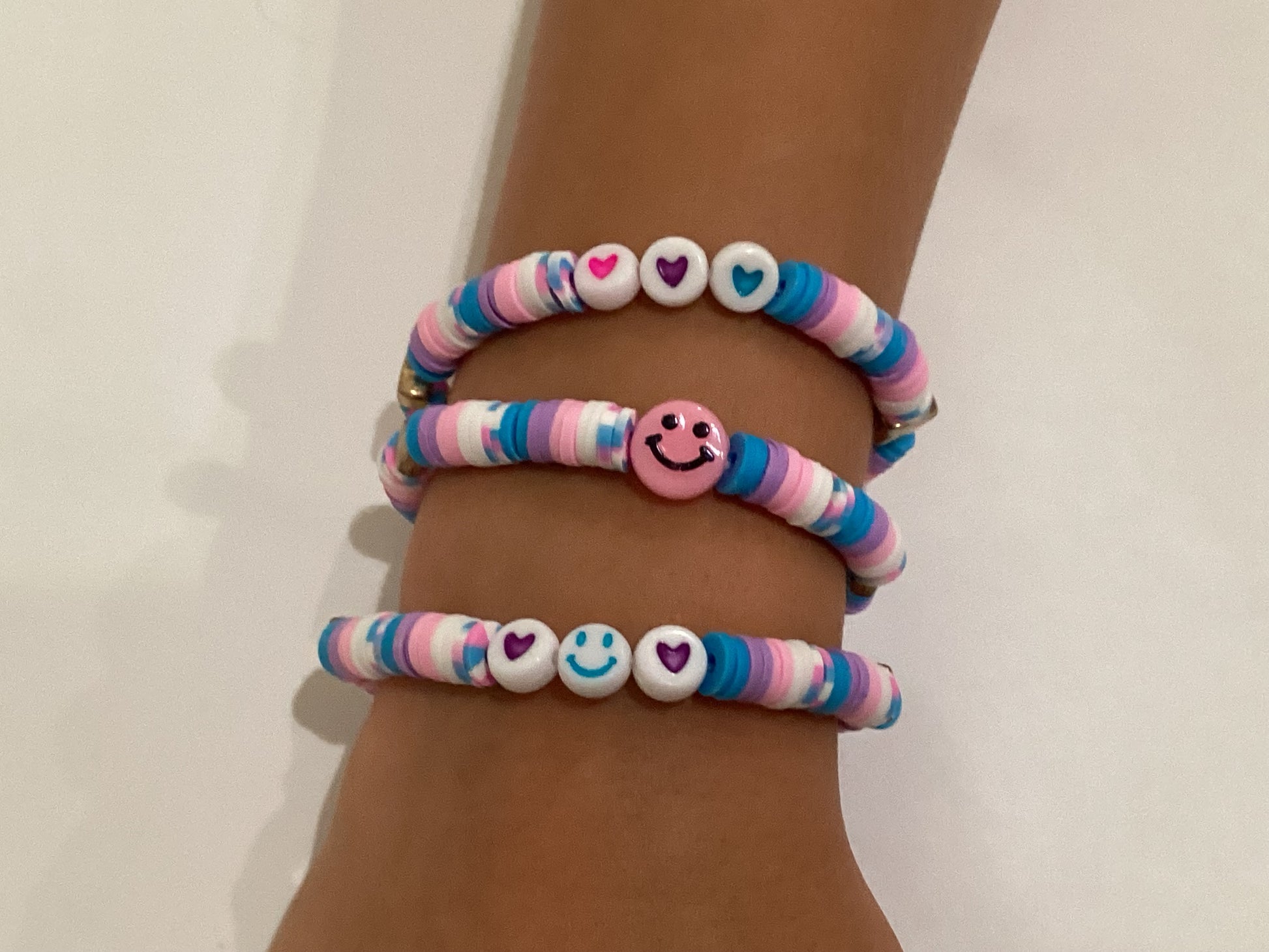 Sweet Candy is a vibrant pink, blue, purple, and white clay bead bracelet. This bracelet has an adjustable chain for a versatile fit and various pink, blue, and purple charms to highlight its theme. Sweet Candy measures 5 3/4 to 7 3/4 inches in length.